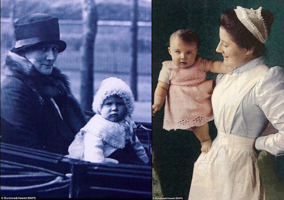 Bức ảnh bên trái chụp khi Nữ hoàng ngồi trên lòng bà Knight đội mũ và mặc một bộ váy đến nay vẫn còn được lưu giữ và bán đấu giá trong bộ sưu tập. Bức ảnh bên phải chụp nhũ mẫu trong bộ đồng phục y tá đang bế và mỉm cười với tiểu công chúa Elizabeth.