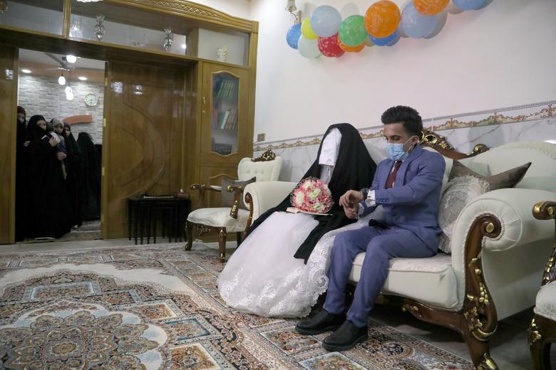 Một cặp vợ chồng người Iraq trong đám cưới của họ ở thành phố Kerbala, Iraq, ngày 12/4.