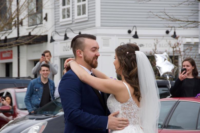 Bạn bè của Joshua và Anastasija Davis chơi nhạc khi cặp đôi ôm nhau nhảy trong một bữa tiệc bất ngờ trên phố. Trước đó cặp đôi tổ chức lễ cưới ở Pitt Meadows, British Columbia, Canada, ngày 22/3.