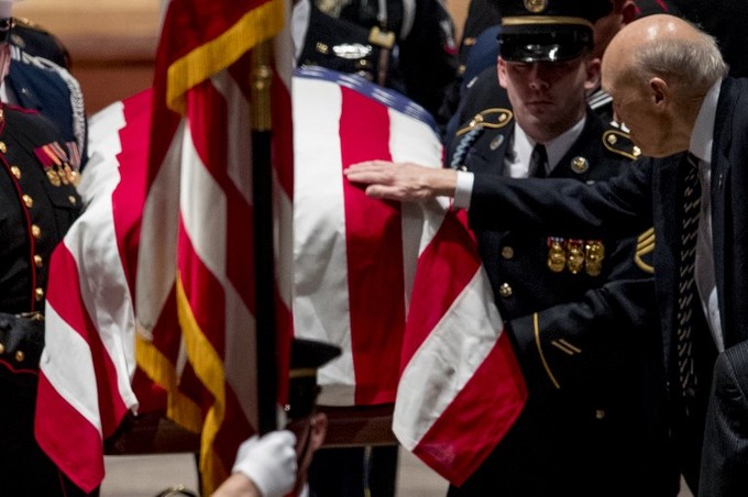 Cựu thượng nghị sĩ Alan Simpson, người bạn lâu năm của ông Bush, chạm tay lên linh cữu. Simpson mô tả Bush là người đàn ông tử tế và đáng kính nhất ông từng gặp. “Bush là người bạn muốn ở bên cạnh. Ông ấy không ghét ai cả”, ông nhấn mạnh.