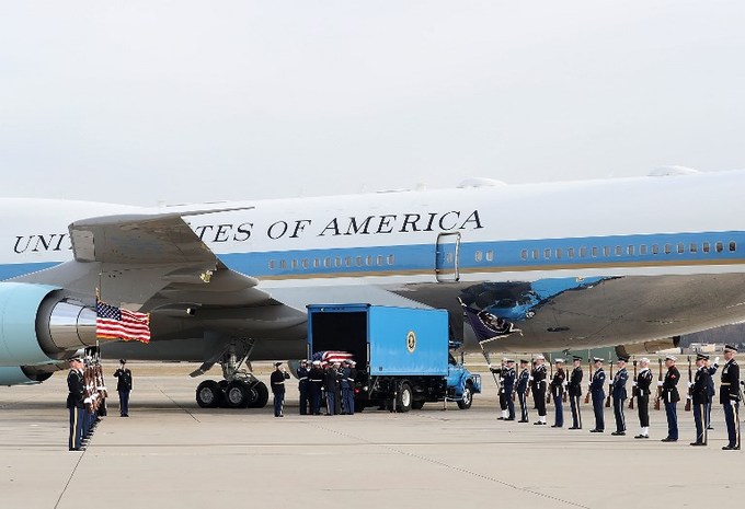 Linh cữu được đưa lên máy bay tại căn cứ Andrews ở Maryland. Ông sẽ được an táng tại khu đất của gia đình ở Thư viện và Bảo tàng Tổng thống George HW Bush trong khuôn viên Đại học Texas A&M ở College Station.