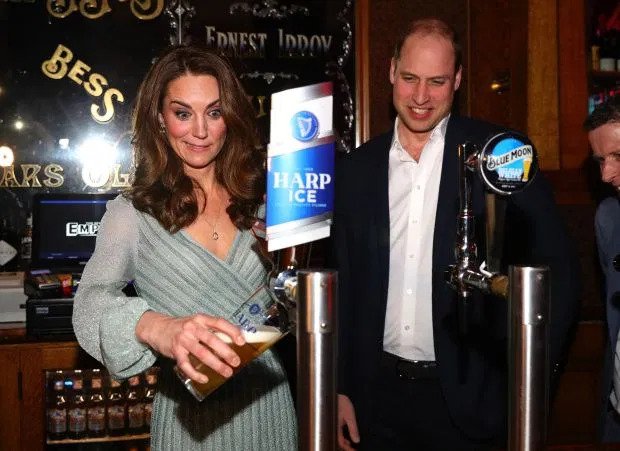 Xứng đáng là người được công chúng yêu mến, Công nương Cambridge đã tự tay rót bia cho một số khách khi cô đến thăm Tòa thị chính của Vương quốc Anh cùng Hoàng tử William.