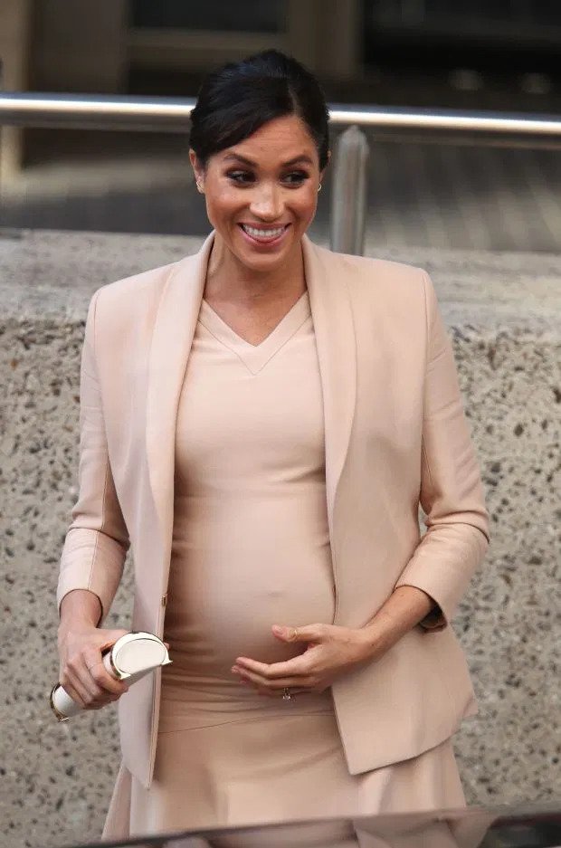 Liên tục làm việc cho đến ngày sinh, Công nương Meghan Markle khiến người hâm mộ nể phục khi mang bụng lớn đến Nhà hát Quốc gia ở London vào tháng 1.