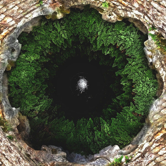Khoảng không vô định “xanh rờn” này thực tế là một cái hố sâu tại Italy. Ảnh: Pikabu
