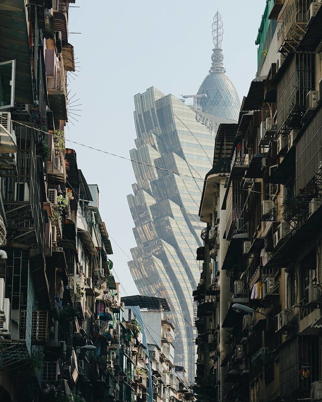 Sự tương phản giữa công trình kiến trúc hiện đại và các khu nhà ổ chuột tại Ấn Độ. Ảnh: Brightside