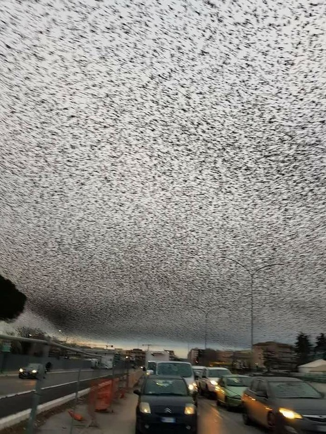 Khung cảnh bầu trời như bối cảnh ngày tận thế thực tế được tạo ra bởi một đàn chim. Ảnh: Pikabu