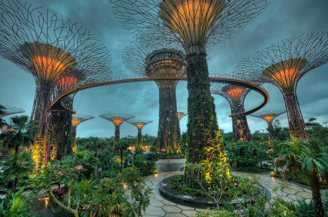 Gardens By The Bay là một khu vườn khổng lồ với diện tích 101 ha được xây dựng từ một khu đất hoang ở trung tâm Singapore tiếp giáp với vịnh Marina nổi tiếng. Toàn bộ công viên gồm có ba khu vườn thác nước lần lượt là: Khu vườn vịnh phía Đông (Bay East Garden), khu vườn vịnh Trung Tâm (Bay Central Garden) và lớn nhất là khu vườn vịnh phía Nam (Bay South Garden) với diện tích 54 ha. Ảnh: Brightside