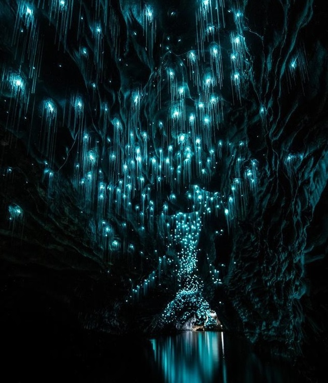 Những tia sáng như những con đom đóm trong một hang động tại New Zealand. Ảnh: Facebook