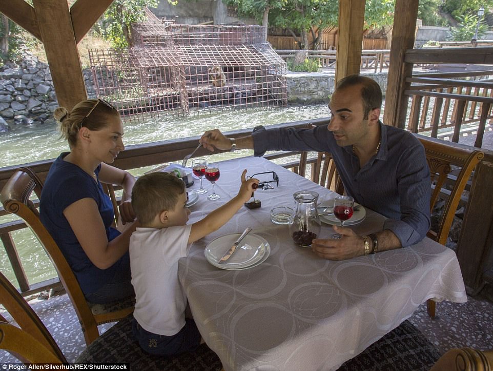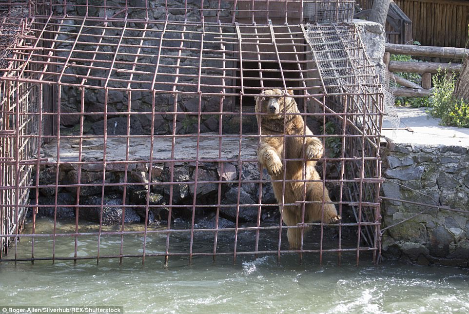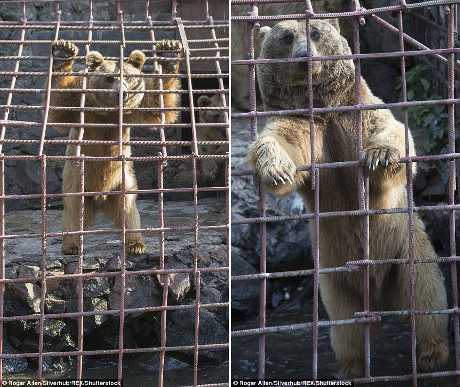 Tại nhà hàng ven sông ở Armenia, nhiều thực khách đã chứng kiến cảnh tượng đau lòng khi hàng chục chú gấu với khuôn mặt thèm thuồng, đói khát đang cố gắng ngoài ra chuồng nhốt đã bị khóa chặt cứng, khi chúng thấy một gia đình đang ăn trưa ngon lành.