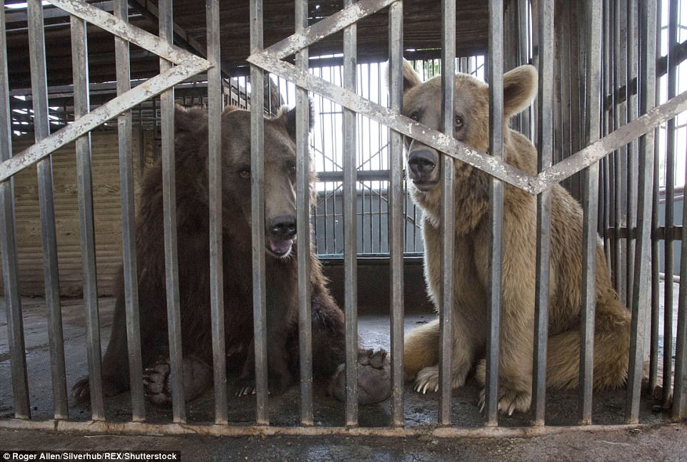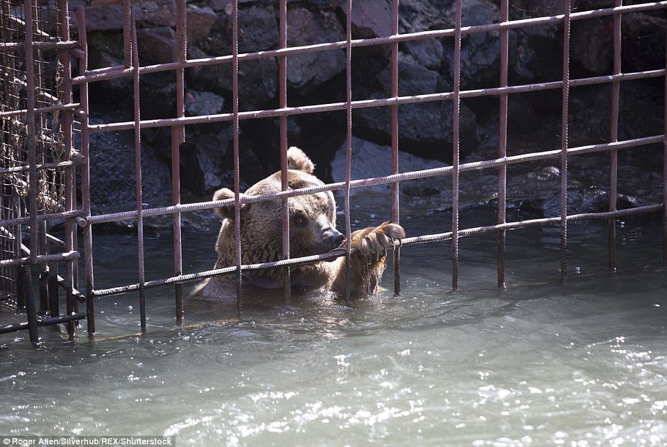 Những chú gấu bị nhốt trong chuồng trong điều kiện khắc nghiệt suốt cả năm trời. Chúng được trưng bày tại các nhà hàng, trạm xe bus, hay các cửa hàng và nhà máy trên khắp đất nước nhằm thu hút khách du lịch hoặc đơn giản để giải trí cho chủ nhân. Những chú gấu còn lại sẽ bị giam giữ và giấu đi trong những căn hầm tăm tối.