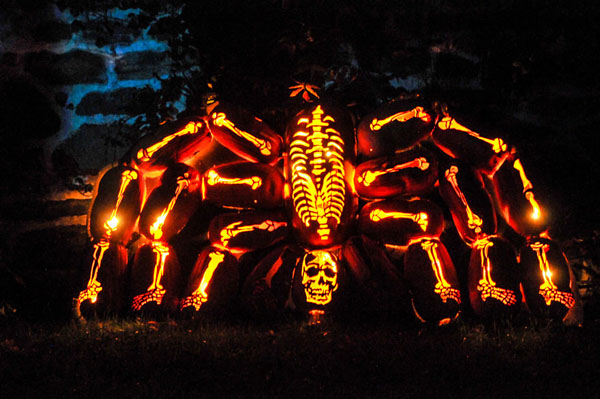 Không chỉ có khủng long, lễ hội Great Jack O'Lantern Blaze còn có cuộc triển lãm của các hình nộm nhện khổng lồ, đầu lâu, bộ xương, quả bí ma quái,…