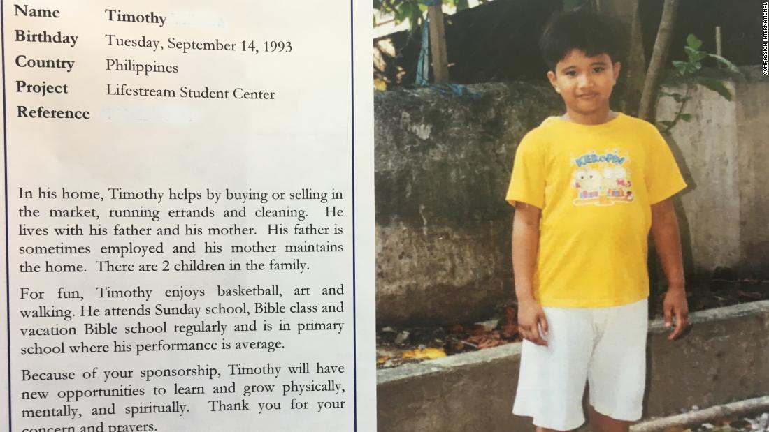 Đó cũng là lần cuối cùng tổ chức Compassion International liên hệ được với Timothy dù đã nỗ lực tìm kiếm cậu. “Chúng tôi không biết giờ Timothy ở đâu nhưng chắc hẳn cậu hiện có một cuộc sống thành công”, ông Stafford nói.