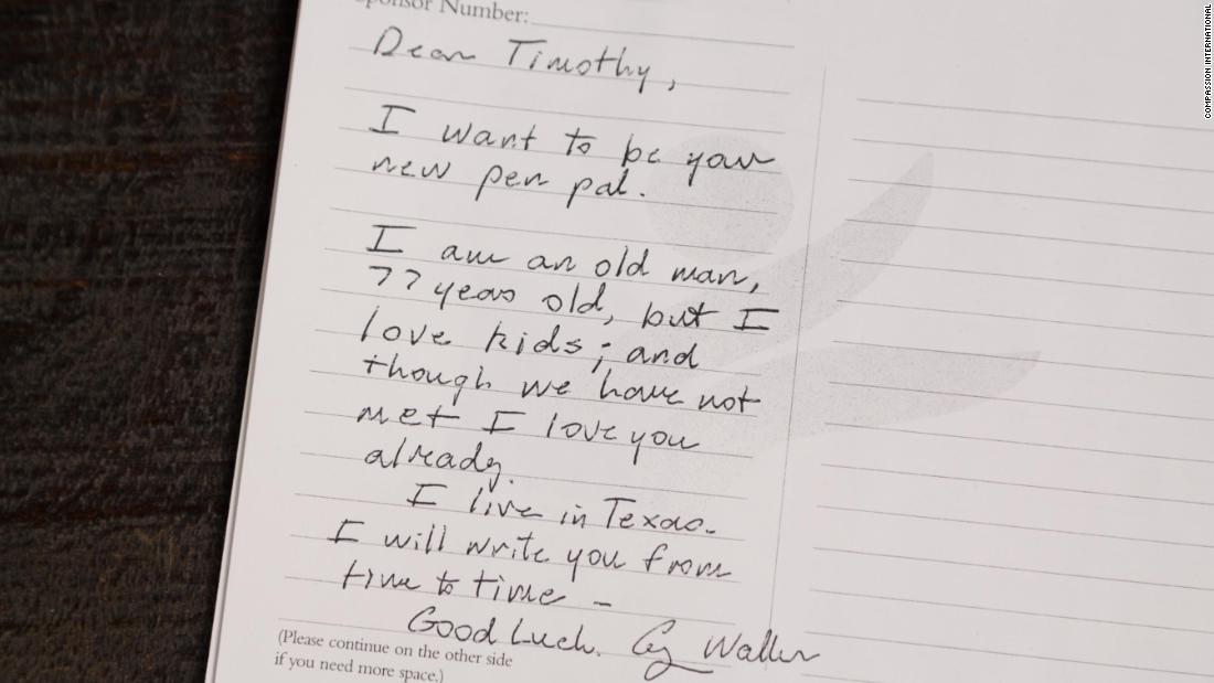 Một trong số những bức thư, cậu bé Timothy cảm ơn người bảo trợ vì luôn nhớ tới cậu.