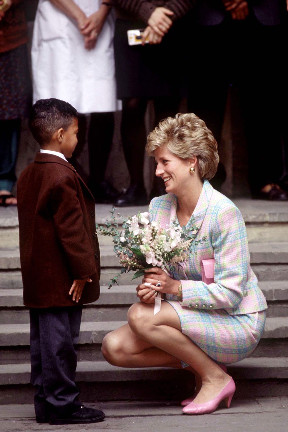 Khi trò chuyện cùng trẻ nhỏ, Công nương Diana luôn cúi người hoặc ngồi xuống ngang tầm mắt bé. Bà là thành viên hoàng gia đầu tiên có hành động này với bất kỳ đứa trẻ nào mình gặp.