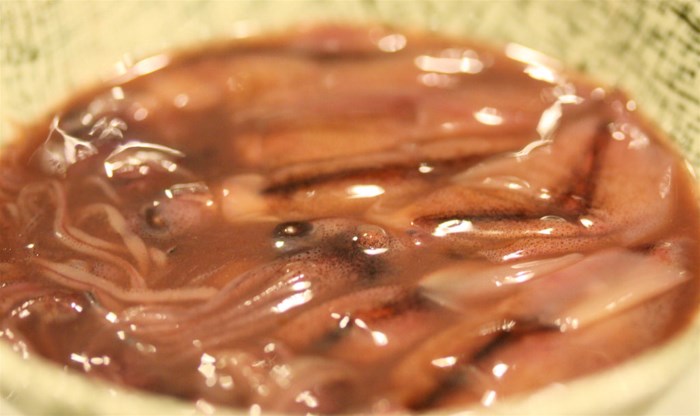 Món Shiokara ngon nhất là loại được ủ trong vòng 6 tháng. Dù nhiều người đánh giá món ăn này khá đặc biệt nhưng nó lại có mùi vị rất tanh nồng và tốt nhất bạn nên bịt mũi khi thử.