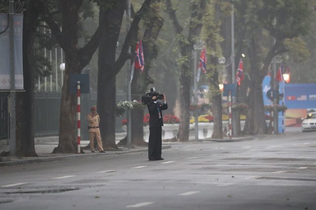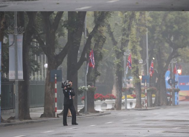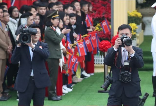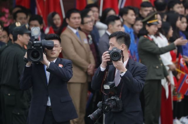 Khi Tổng thống Donald Trump và nhà lãnh đạo Kim Jong-un gặp nhau tại cuộc gặp thượng đỉnh lần hai ở Hà Nội trong tuần này, ước tính có khoảng 3.000 phóng viên từ khắp nơi trên thế giới đổ về Việt Nam để đưa tin về sự kiện. Theo Washington Post, đoàn truyền thông nhà nước Triều Tiên tháp tùng ông Kim Jong-un tại Hà Nội gồm 8 người. (Ảnh: EPA)