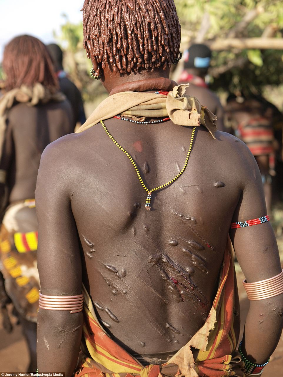 Đến bộ tộc Hamar ở thung lũng sông Omo, phía nam Ethiopia, nhiều người hẳn sẽ ngạc nhiên khi nhìn thấy những tấm lưng chằng chịt sẹo lớn, sẹo nhỏ của phụ nữ bản địa. Theo Daily Mail, đây là những vết tích sau những trận đánh đập đến tứa máu trong lễ hội theo tín ngưỡng địa phương.