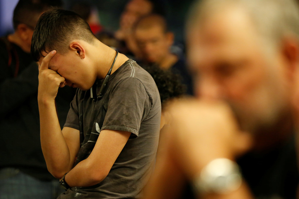 Một người đàn ông trong buổi lễ tưởng niệm các nạn nhân của vụ xả súng ngày 1/10 tại Las Vegas. Ảnh: Reuters.