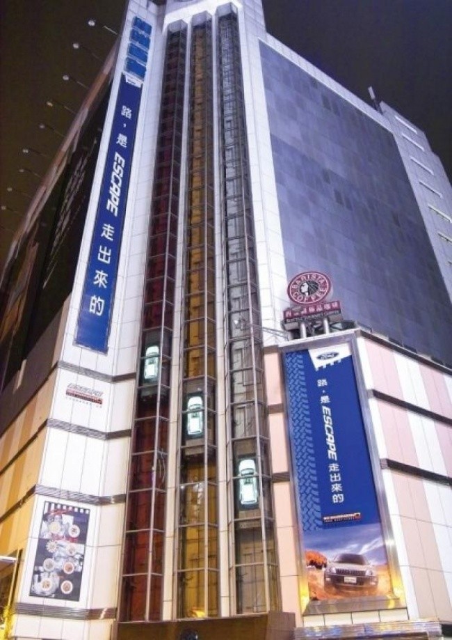 Đây là những buồng thang máy được thiết kế giống với chiếc xe Ford Escape. Nó được đặt tại Trung Quốc và được đưa vào hoạt động vào tháng 1/2004.