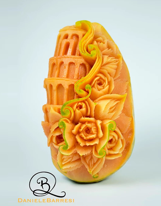 Trong quan niệm của nhiều người, nữ công gia chánh đương nhiên được gắn mác dành cho nữ giới. Nhưng không vì thế mà suy nghĩ bó buộc này có thể ngăn cản được tình yêu của anh chàng Daniele Barresi với nghệ thuật tỉa hoa quả. Đến với bộ môn khéo tay này từ năm lên 7, qua nhiều năm trau dồi và rèn luyện, giờ đây anh chàng có nhiều hoa tay này đã cho ra mắt nhiều tác phẩm tỉa tay đã đạt tới mức đỉnh cao.
