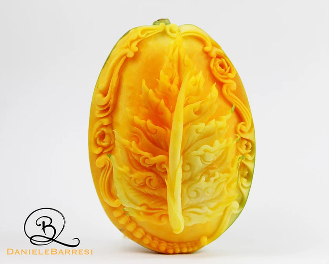 Với những đường nét uốn lượn điêu luyện như thế này, thật dễ hiểu vì sao Daniele lại có tới 2 lần đạt giải vô địch tỉa hoa quả thế giới.