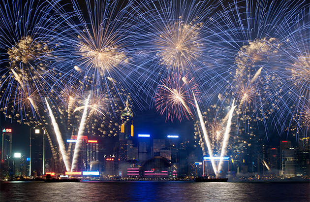 Đường chân trời tại Hong Kong, kết hợp với màn pháo hoa đêm giao thừa là cảnh tượng mà du khách khó có thể nào quên.