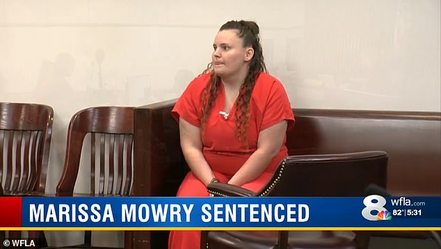 Vào tháng 10 năm đó, Mowry đã hạ sinh con trai của cậu bé nhưng cha mẹ nạn nhân không nghi ngờ gì về việc con mình bị lạm dụng, họ tin rằng bạn trai của Mowry là cha đứa trẻ và vẫn cho phép cô ở lại làm việc. Theo WFLA, Mowry đã lạm dụng cậu bé ít nhất 15 lần trong suốt vài tháng. Nạn nhân đã không nói ra chuyện này cho đến năm 2017. Tại thời điểm đó, Mowry bị bắt giữ.