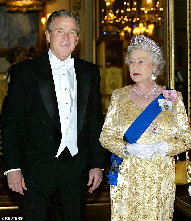 Tổng thống Bush con cũng có nhiều cơ hội gặp gỡ Nữ hoàng Anh. Ông từng đến thăm Cung điện Buckingham hồi tháng 7/2001, hai năm sau đó, Tổng thống Mỹ có chuyến thăm chính thức tới Vương quốc Anh. Nữ hoàng đã tiếp đón ông rất long trọng, cho người chuẩn bị cả dụng cụ thiết bị tập luyện thể thao tại cung điện Buckingham bởi bà nghe nói ông Bush con rất thích chạy bộ, đi đến đâu cũng có máy chạy bộ.
