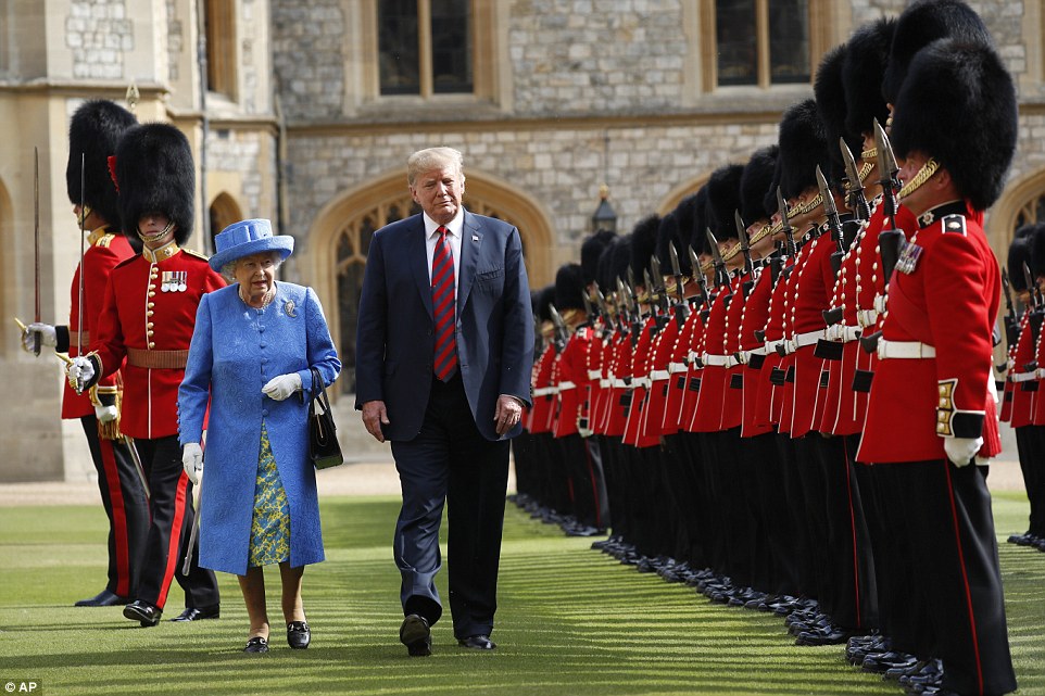 Tháng 7 năm ngoái, Nữ hoàng đã gặp gỡ Tổng thống Mỹ Donald Trump cùng Đệ nhất phu nhân Melania tại lâu đài Windsor. Sau khi dự lễ duyệt danh dự và lễ diễu binh, hai người đã có một bữa tiệc trà riêng trong lâu đài.