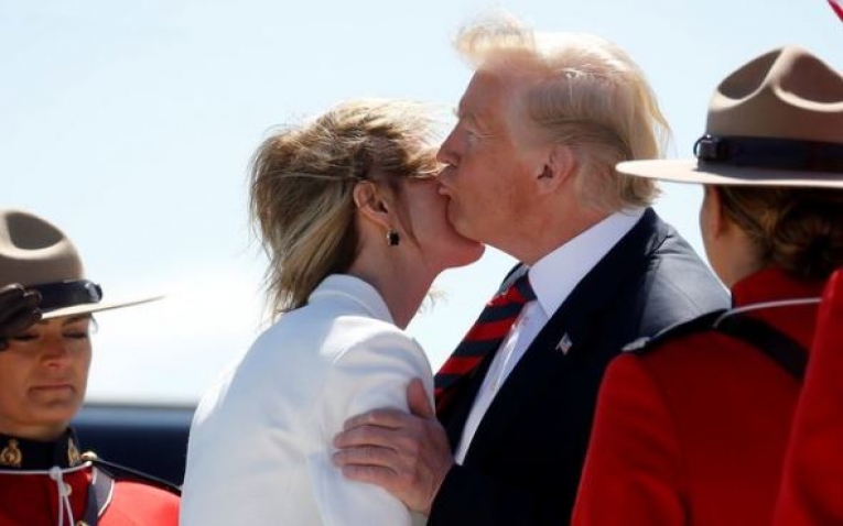Tình huống xảy ra khi Tổng thống Trump đón Đại sứ Mỹ tại Canada Kelly Knight Craft trước khi tham dự Thượng đỉnh G7 tại Quebec, Canada cuối tuần này.
