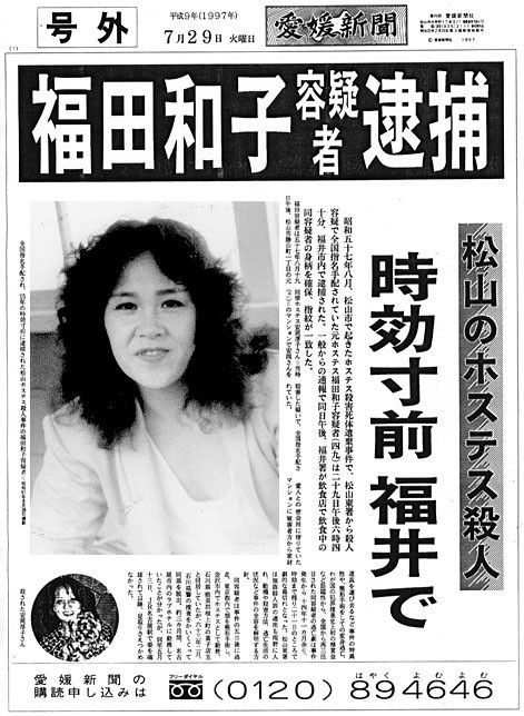 Kazuko Fukuda, 34 tuổi, một người phụ nữ 4 con sinh sống tại Matsuyama, tỉnh Ehime đã siết cổ Atsuko Yasuoka, 31 tuổi một cách dã man cho đến chết vào ngày 19/8/1982 tại nơi cư trú của nạn nhân. Kazuko Fukuda và Atsuko Yasuoka cùng là tiếp viên tại một quán rượu địa phương.