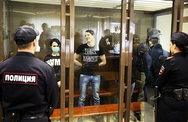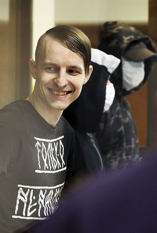 Dù đứng trước tòa nhưng Pavel Voitov vẫn cười.