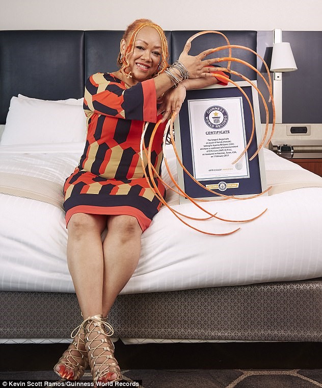 Từ khi bắt đầu trưởng thành, cô Ayanna Williams nảy ra ý định nuôi bộ móng của mình dài và tới nay đã hơn 23 năm. Cô tiết lộ rằng, điều khó nhất để làm bộ móng “khủng” của cô là mất đến cả tuần để vẽ và trang trí từng chiếc móng, thậm chí chúng thường hay va quệt vào chân.