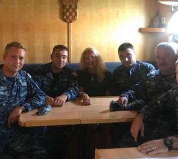 Đội cứu hộ Croatia chụp ảnh với Kay sau khi cô đã được nhân viên y tế kiểm tra.