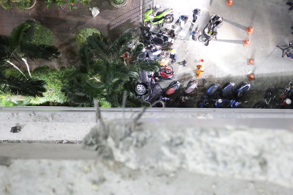 Sở cảnh sát Wat Phayakrai nhận tin báo vào lúc 23h ngày 25/3 về việc một chiếc ô tô rơi khỏi bãi đỗ xe của tòa nhà chung cư Phraram 3 Residence 9 tầng trên đường Rama III. Tài xế được xác định là Rungthip Thongchanreed, 40 tuổi.