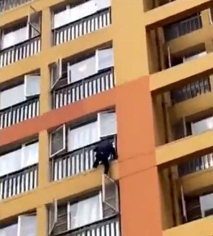 Người dân xung quanh chụp được hành động này của ông lão thì vô cùng hoảng hốt can ngăn, nhưng ông lão một mực trèo qua 9 tầng nhà. May mắn thay, cả ông lão cùng cô bé trong nhà đều không xảy ra chuyện gì.