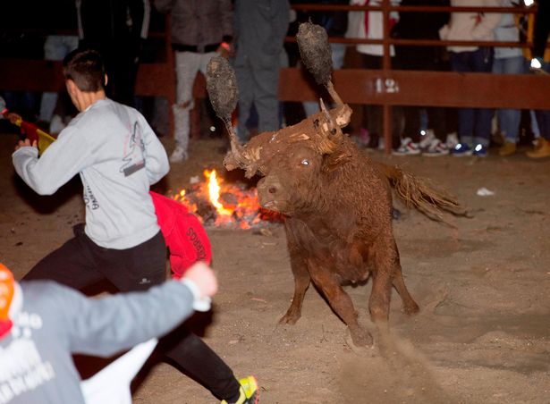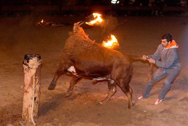 Những người ủng hộ lễ hội cho biết những con bò không phải chịu đau đớn. Nhưng thực tế thì không phải vậy. Trông chúng cực kỳ hoảng loạn khi bị thiêu rụi sừng và quằn quại trong sức nóng của ngọn lửa lớn.