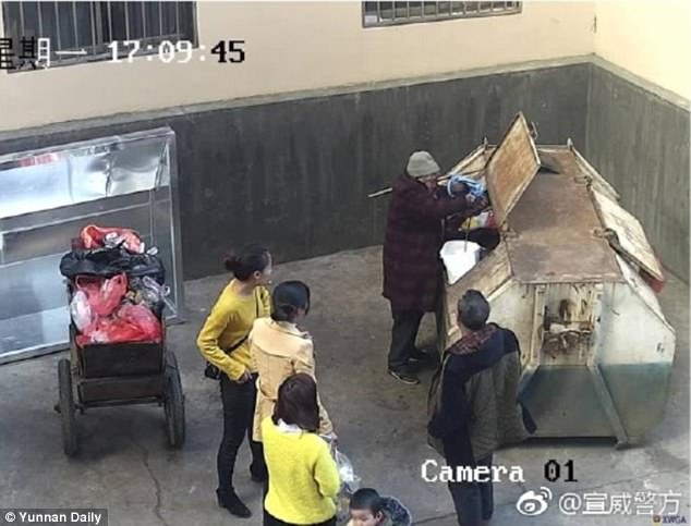 Vào lúc 16h30 ngày 15/1, người đàn ông mặc áo phông đỏ cầm một chiếc túi giấy, tiến tới gần một thùng rác tại khu dân cư ở huyện Tuyên Uy, Vân Nam, Trung Quốc. Bên trong chiếc túi không phải rác rưởi, mà chính là đứa con gái mới chào đời được 2 tiếng của anh ta. Đứa trẻ còn chưa được cắt dây rốn.
