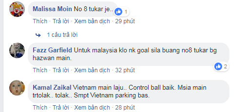 Bên cạnh đó, nhiều CĐV Malaysia cũng phải công nhận rằng lối chơi của đội tuyển Việt Nam trong tối ngày hôm nay rất tốt. Thậm chí, có CĐV còn cho rằng đội tuyển Malaysia nếu muốn chiến thắng cần phải hạ gục được cầu thủ số 8 Trọng Hoàng của tuyển Việt Nam.