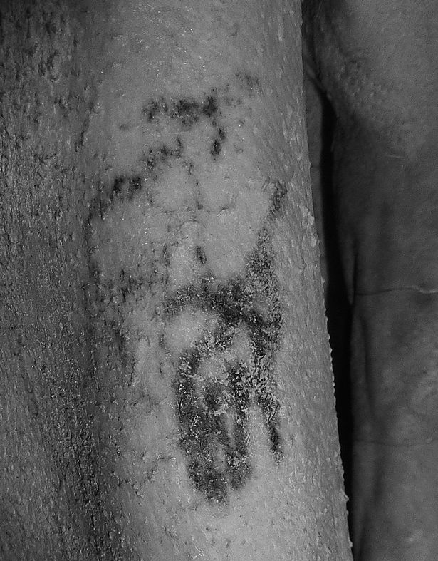Hình xăm này có thể là một chiếc gậy cong biểu tượng cho quyền lực thời cổ đại.