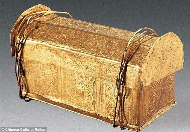 Chiếc quan tài vàng tinh xảo chứa xương sọ Đức Phật.
