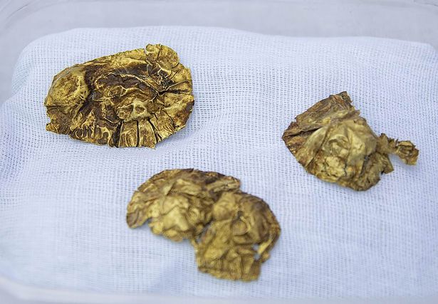 Trong số những vật phẩm được phát hiện có những bông tai hình chuông, vàng lá với đinh tán bên trên, những tấm bản, các dây chuyền đều bằng vàng và một vòng cổ gắn đá quý.