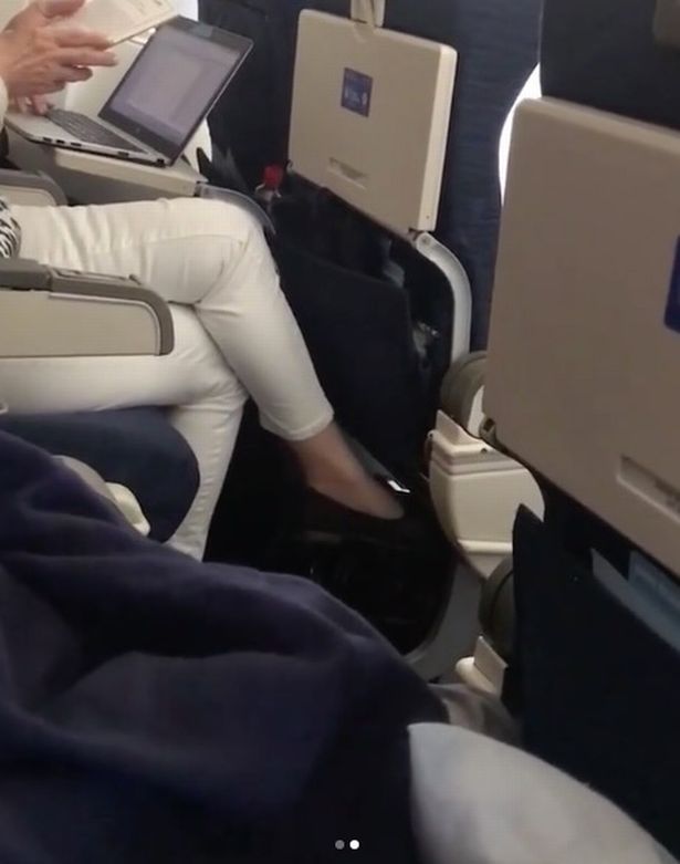 Genevieve chia sẻ hình ảnh phản cảm cho thấy nam hành khách ngồi cạnh cô dường như có hành vi bất lịch sự trên chuyến bay của United Airlines. Ảnh: Instagram