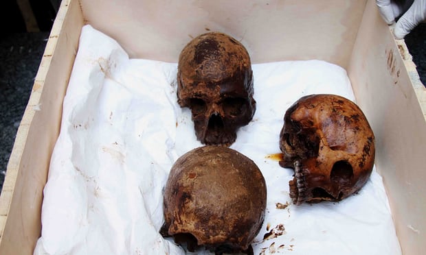 3 hộp sọ sẽ được mang đi phân tích để xác định nguyên nhân cái chết và độ tuổi của hài cốt. Ảnh: Reuters