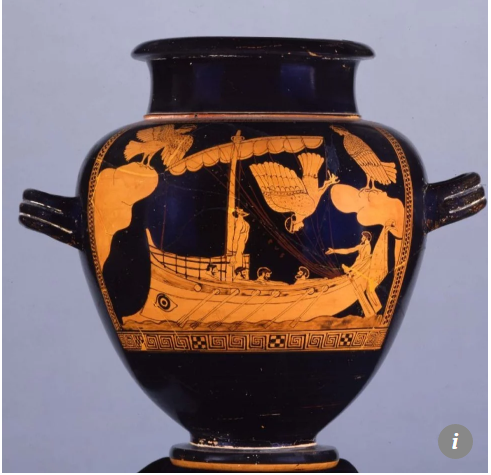 Con tàu được nhận định là tàu chở hàng và từng được phác họa trên chiếc bình gốm Hy Lạp cổ đại, đang được trưng bày tại Bảo tàng Anh.
