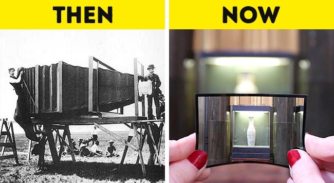 Chiếc máy ảnh đầu tiên trên thế giới xuất hiện vào năm 1900. Khi đó, thiết bị này có kích thước siêu “khủng” - nặng tới 408 kg và phải có 15 người mới có thể khiêng nó lên giá đỡ. Cho tới ngày nay, những phiên bản mới đã nhỏ gọn và tiện dụng hơn rất nhiều.
