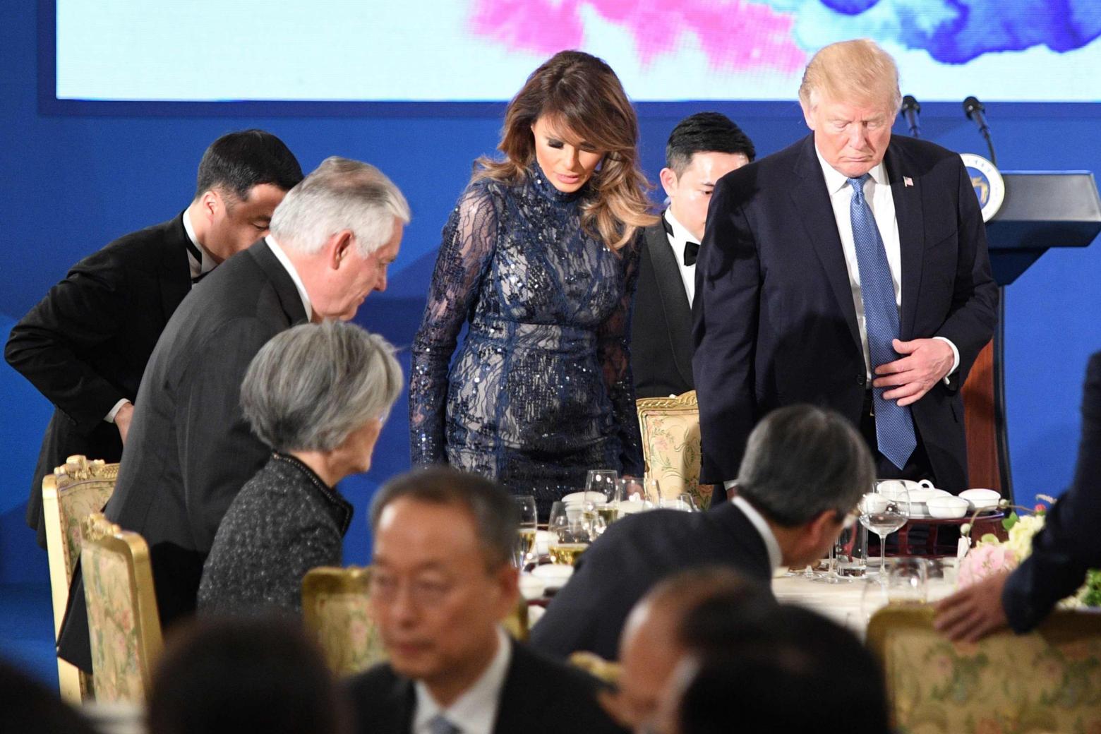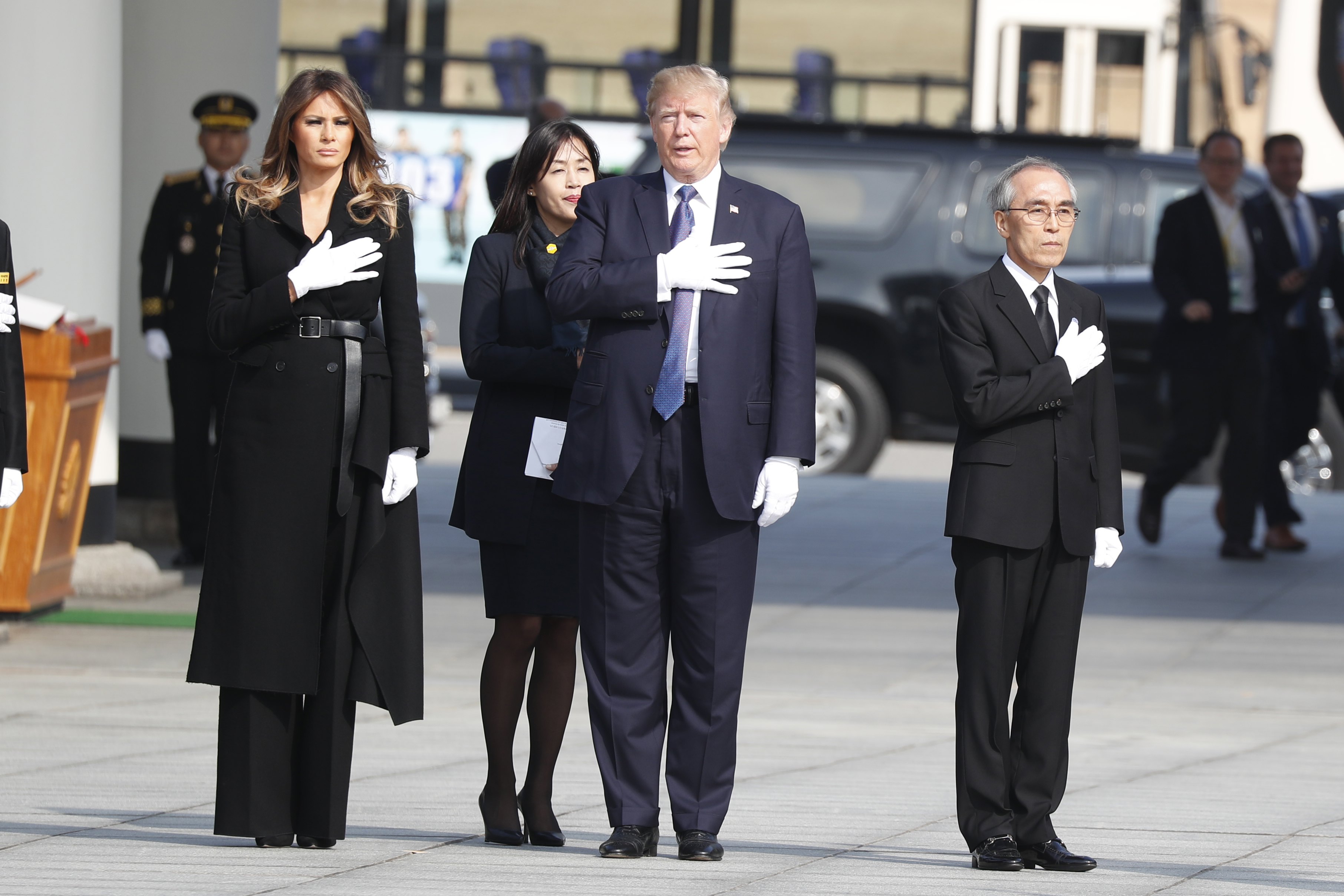 Tổng thống Trump và Đệ nhất phu nhân Melania trong chuyến thăm viếng nghĩa trang quốc gia tại Seoul, Hàn Quốc.