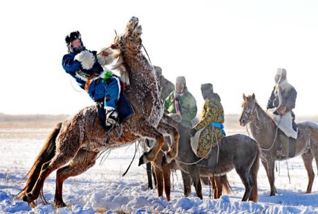 Các cao niên tại Mông Cổ chuộng mốt mặc đồ như những người chăn dê: Khoác áo lông thú, đội mũ da, tay cầm một chiếc roi, liên tiếp quất vào không trung.