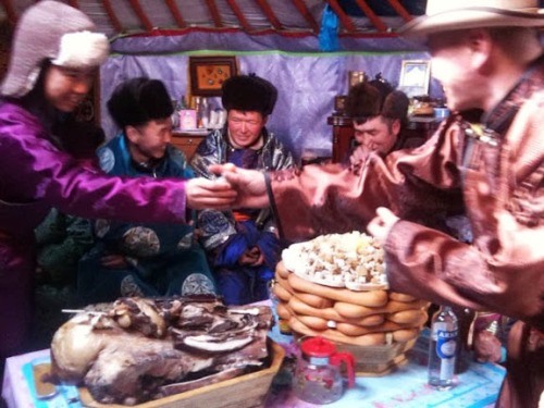 Người dân Mông Cổ tặng nhau những vật dụng màu trắng trong ngày Tết để cầu chúc những điều may mắn hạnh phúc sẽ đến với gia chủ.
