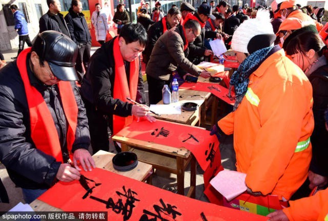 Tại Thạch Gia Trang, tỉnh Hà Bắc, nhiều ông đồ đứng tại đường bán chữ, tặng chữ hay câu đối cho người dân.